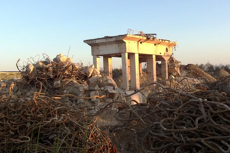 The imagery lends the all-powerful tools of structural machinery a primeval, titanic look and feel; one feels they could easily originate from a distant geological age, just like the coal that was once converted into electricity here. A three-man wrecking crew reduce what once provided five-thousand people with work to rubble, inadvertently creating temporary sculptures in the process. A reflection on the local and global dimensions of reducing our dependence on non-renewable energy sources.