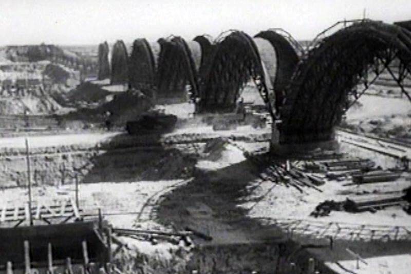 Cineastic report about the construction works at gas combine “Schwarze Pumpe”.